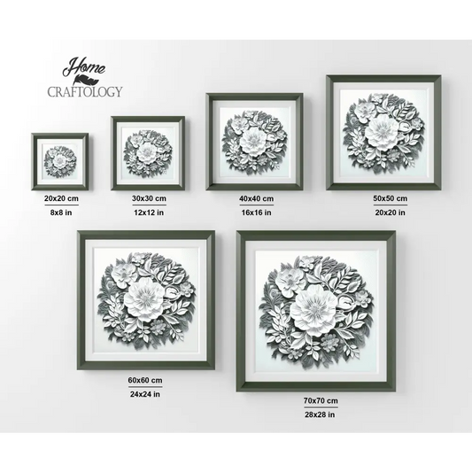 White Flowers with Leaves - Exclusive Premium Diamond Painting Kit