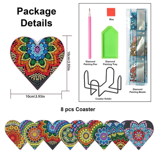 Set of 8 Heart Mandala - Diamond Painting Coaster