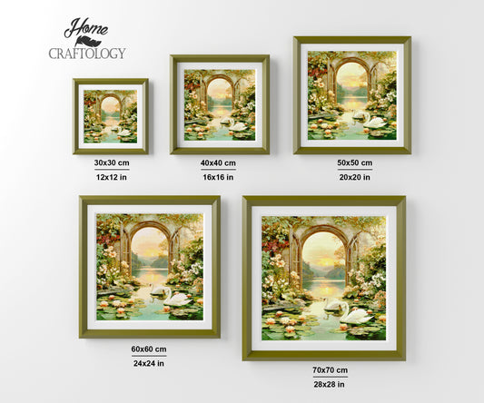 Sunset Lilies and Swans on the Lake - Time Limited Exclusive Diamond Painting Kit